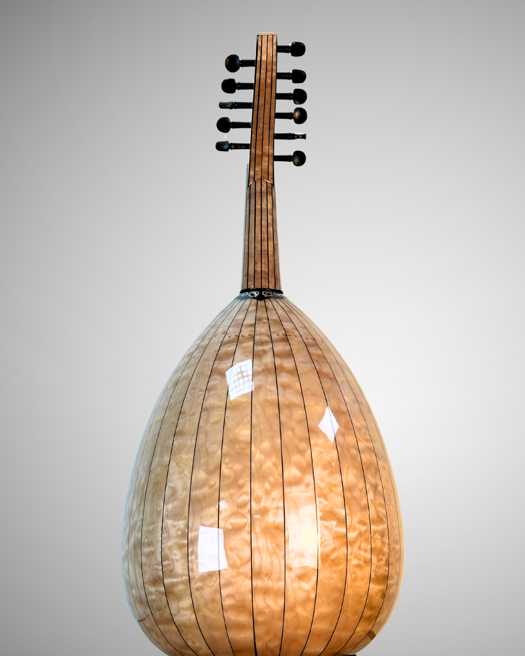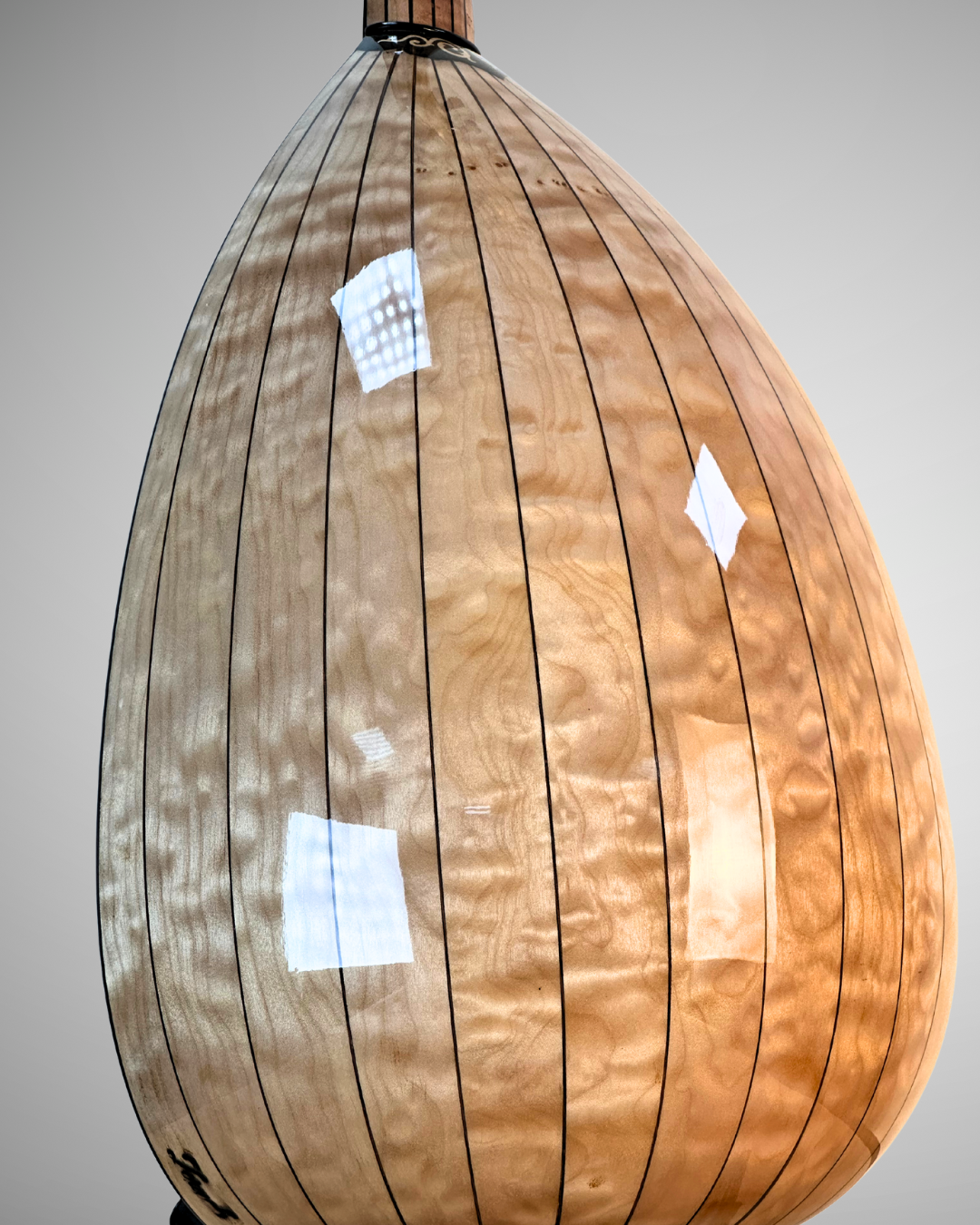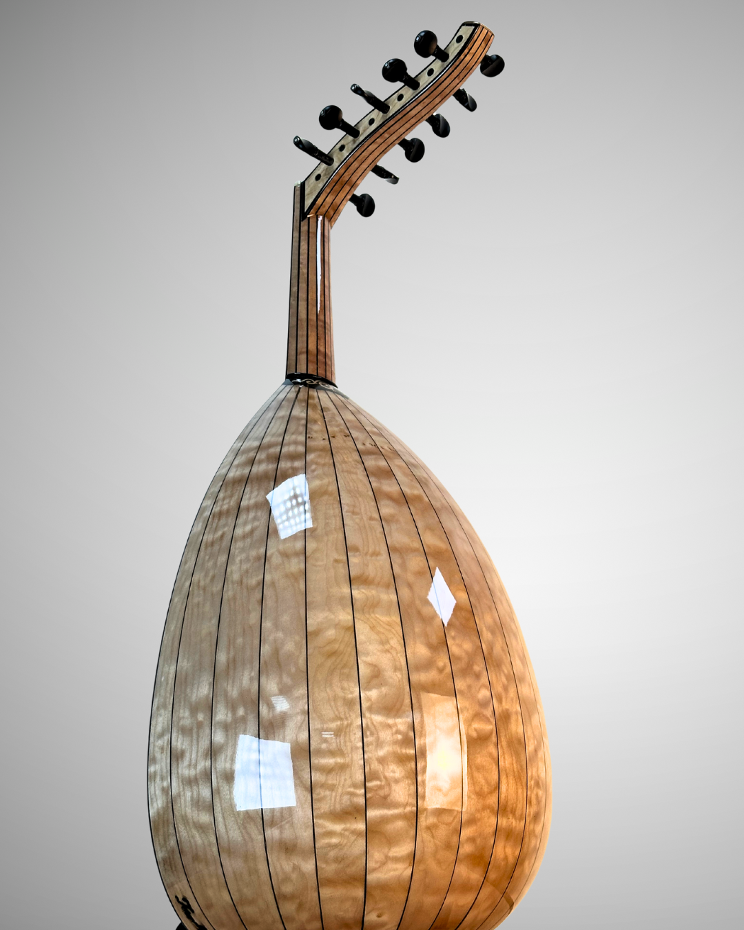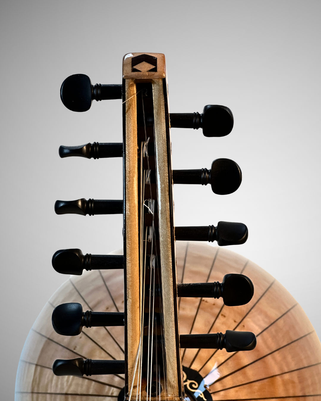 A premium oriental oud crafted as a custom-made instrument, designed for rich, warm, and well-balanced sound, using carefully selected premium woods: